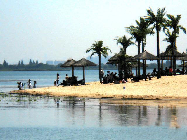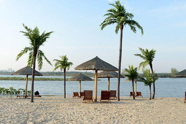 比如我們松濤工藝的特色案例——武漢世貿(mào)龍灣仿真椰子林,就是受當(dāng)?shù)亻_(kāi)發(fā)商的邀請(qǐng),在當(dāng)?shù)匾粋€(gè)三面環(huán)水的小島上打造出一個(gè)世茂龍灣——馬爾代夫風(fēng)情沙灘。該項(xiàng)目充分展現(xiàn)生態(tài)人居的理念,我們松濤工藝在設(shè)計(jì)、施工的過(guò)程中注重把美學(xué)藝術(shù)和實(shí)用性融入施工環(huán)境,在塑造完美景觀的基礎(chǔ)上保障經(jīng)久耐看和使用壽命更長(zhǎng)。所以我們公司所采用的椰子樹(shù)材料就有所不同,我們用鋼結(jié)構(gòu)貫穿樹(shù)桿內(nèi)部,底部加牢固定有鋼板和爆炸螺絲,可抗十級(jí)以上臺(tái)風(fēng)。在塑造椰子樹(shù)橫臥水面狀態(tài)下的自然風(fēng)景時(shí),更是表現(xiàn)出松濤工藝不凡的設(shè)計(jì)和施工能力,一般傳統(tǒng)同行基本難以完成這類景觀藝術(shù)化的制作。