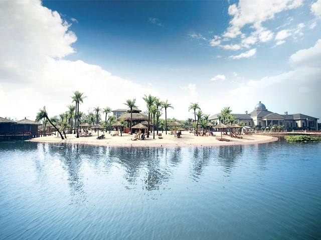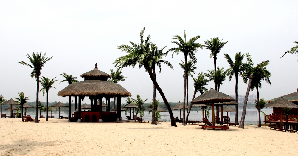 比如我們松濤工藝的特色案例——武漢世貿(mào)龍灣仿真椰子林,就是受當(dāng)?shù)亻_(kāi)發(fā)商的邀請(qǐng),在當(dāng)?shù)匾粋€(gè)三面環(huán)水的小島上打造出一個(gè)世茂龍灣——馬爾代夫風(fēng)情沙灘。該項(xiàng)目充分展現(xiàn)生態(tài)人居的理念,我們松濤工藝在設(shè)計(jì)、施工的過(guò)程中注重把美學(xué)藝術(shù)和實(shí)用性融入施工環(huán)境,在塑造完美景觀的基礎(chǔ)上保障經(jīng)久耐看和使用壽命更長(zhǎng)。所以我們公司所采用的椰子樹(shù)材料就有所不同,我們用鋼結(jié)構(gòu)貫穿樹(shù)桿內(nèi)部,底部加牢固定有鋼板和爆炸螺絲,可抗十級(jí)以上臺(tái)風(fēng)。在塑造椰子樹(shù)橫臥水面狀態(tài)下的自然風(fēng)景時(shí),更是表現(xiàn)出松濤工藝不凡的設(shè)計(jì)和施工能力,一般傳統(tǒng)同行基本難以完成這類景觀藝術(shù)化的制作。